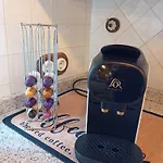 A vendégek a felszerelt konyhasarokban készíthetnek ételeket, vagy étkezhetnek az étkezőben. Az ételek elkészítéséhez mosogatógépet, kávé/tea készítőt és hűtőt is igénybe vehet.